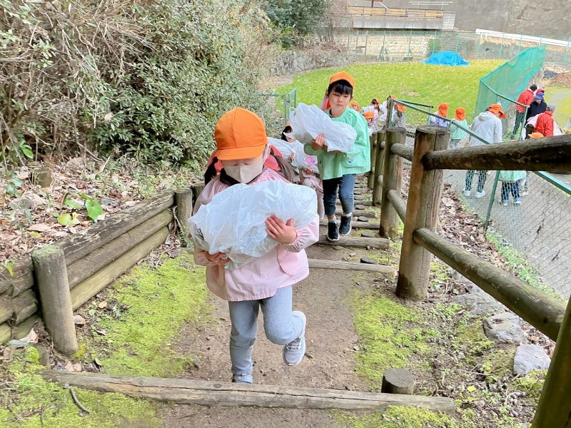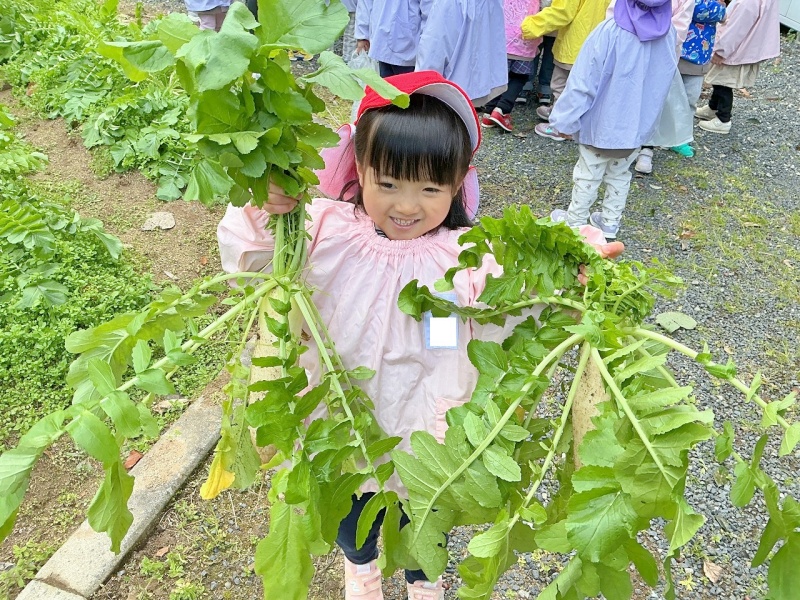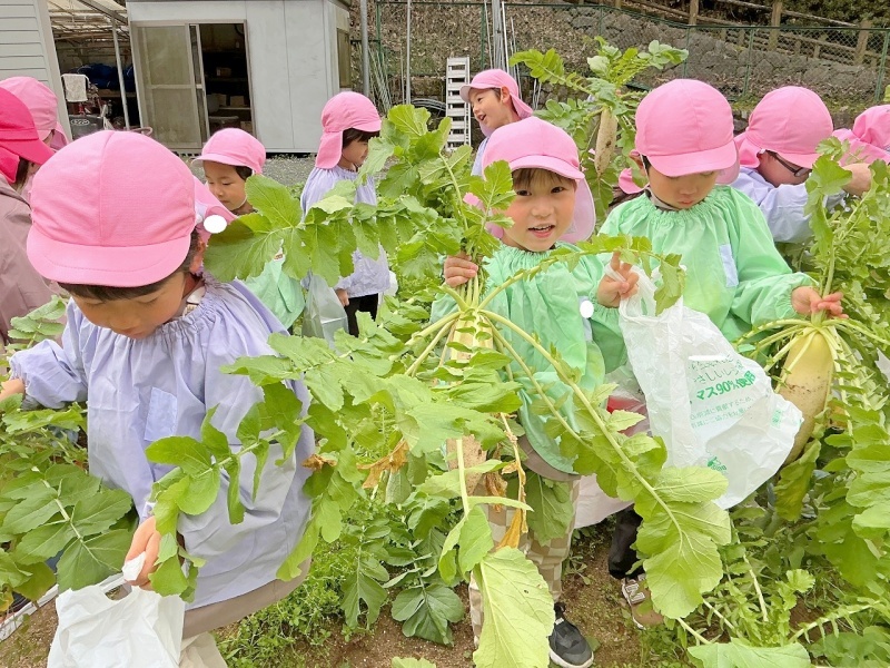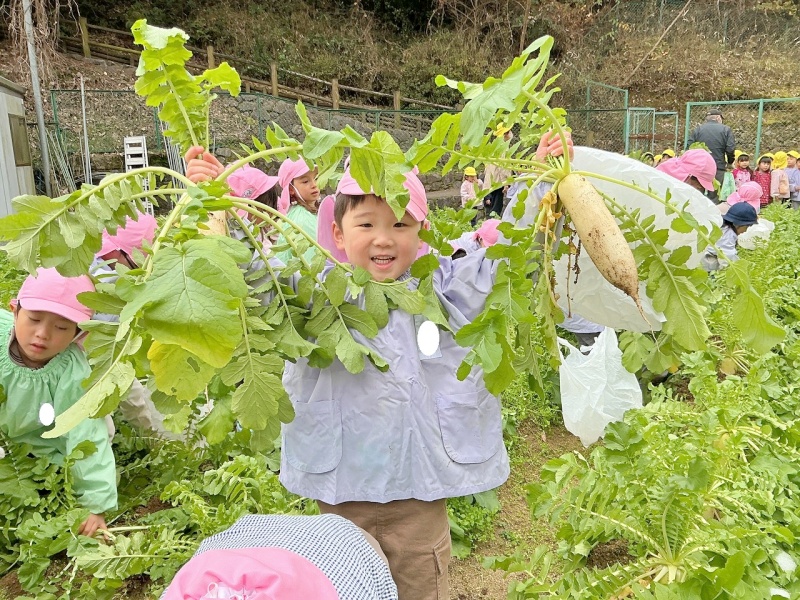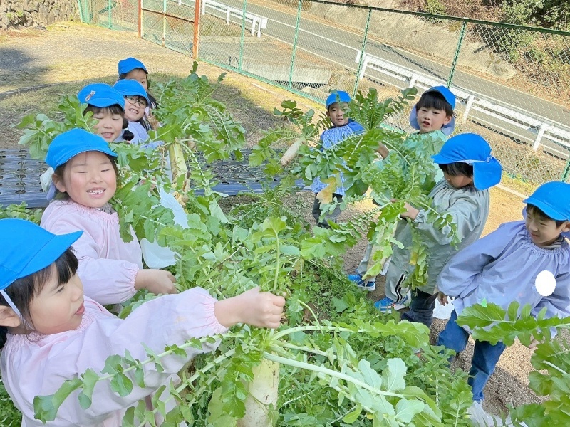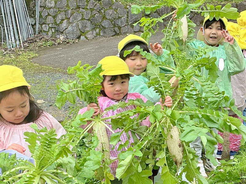 両手でしっかりと大根を持ち、力いっぱい頑張りました!