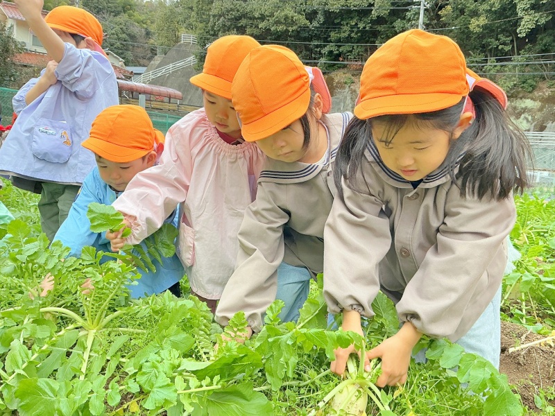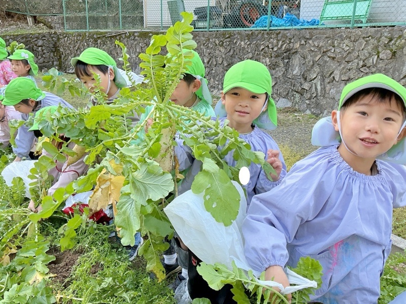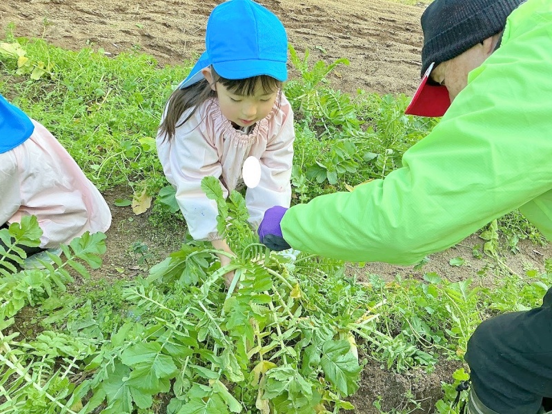 畑の管理をしてくださっている山根さんと増野さんから、「大根ができたよ」と連絡があり、大根掘りに行きました(*^^*)