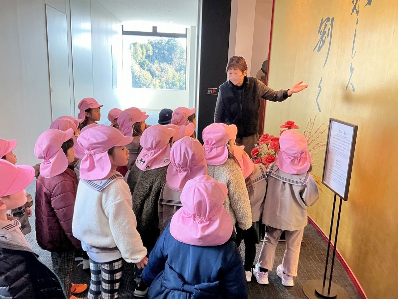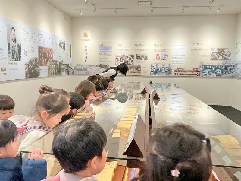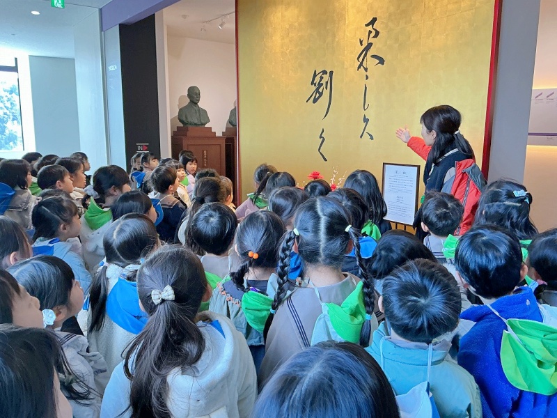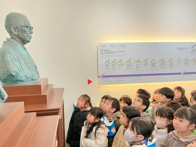 1月21日は安田学園の創立記念日です。学園訓の「柔しく 剛く」についてや学園創設者の思いに触れることができるよう、年中組と年長組は安田リヨウ記念へ行きました。写真や胸像、展示物を見たり、園長先生や担任から話を聞いたりしました。