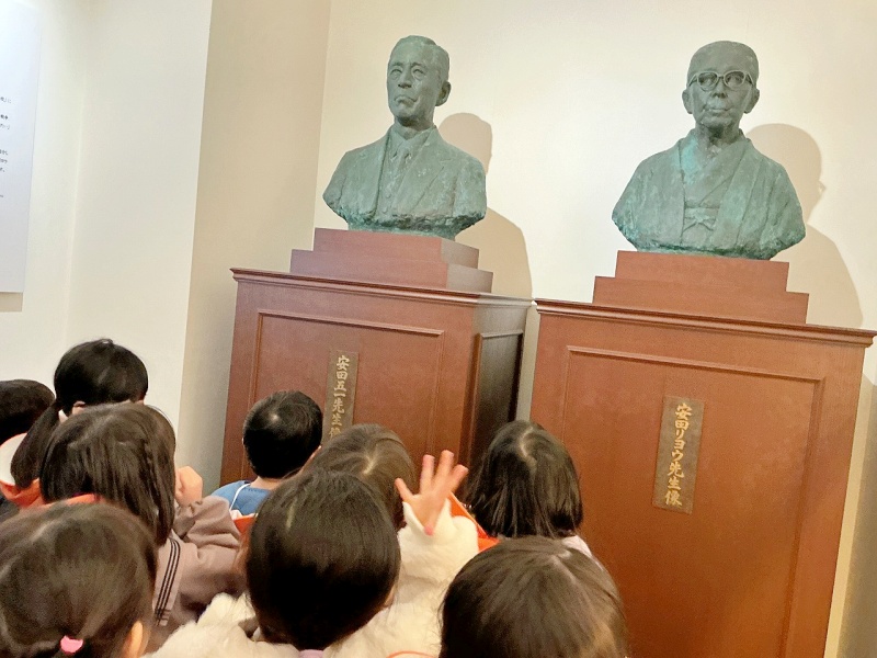 年少組は今日、安田女子大学1号館にある安田リヨウ記念館に見学に行きました。