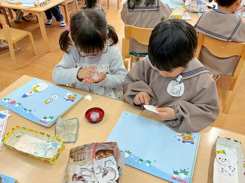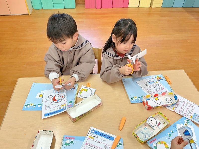直線だけでなく、曲線もあり、子どもたちは紙とハサミを上手に使いながら切っていました♪