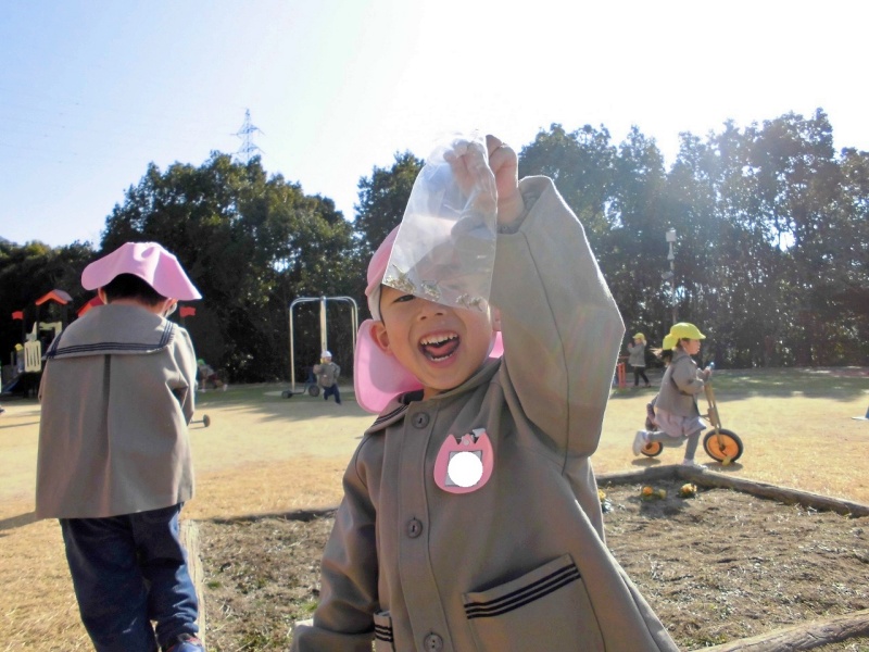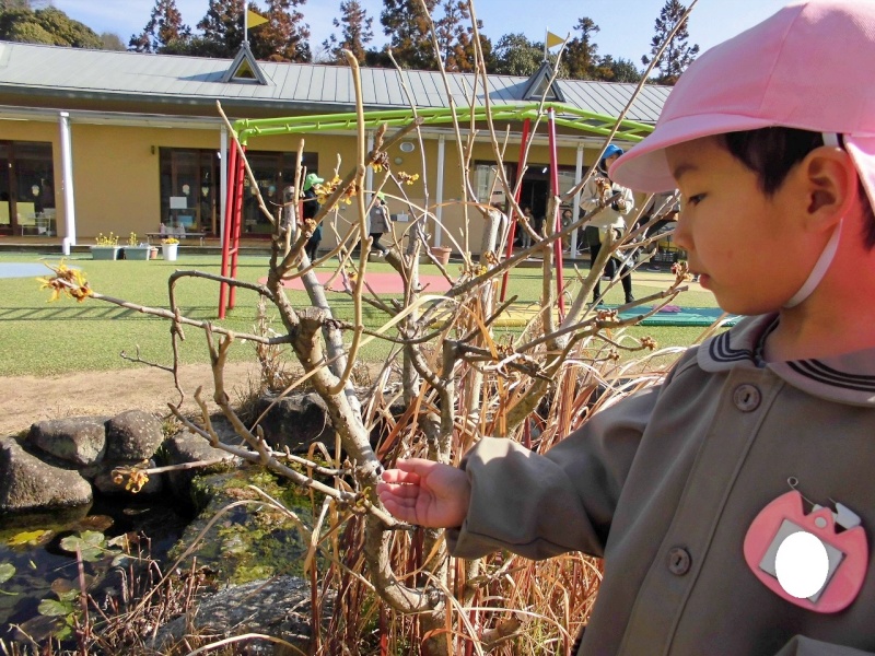 何と本当に春が来ていました。今日、園庭で春を見つけてニッコリ(⋈◍>◡<◍)。