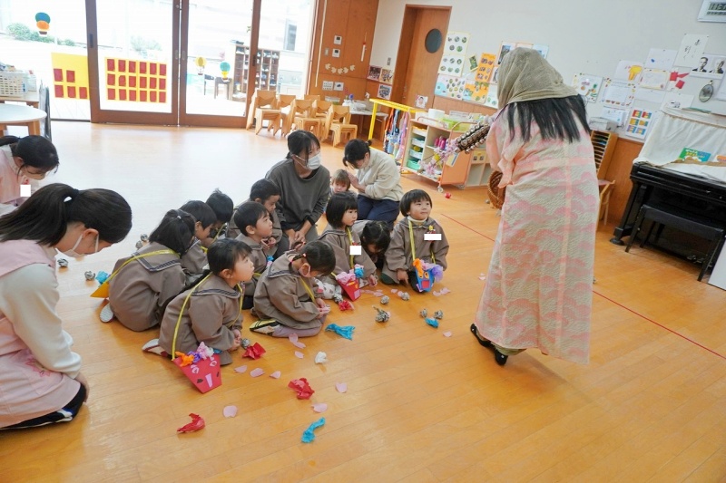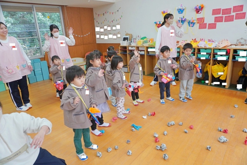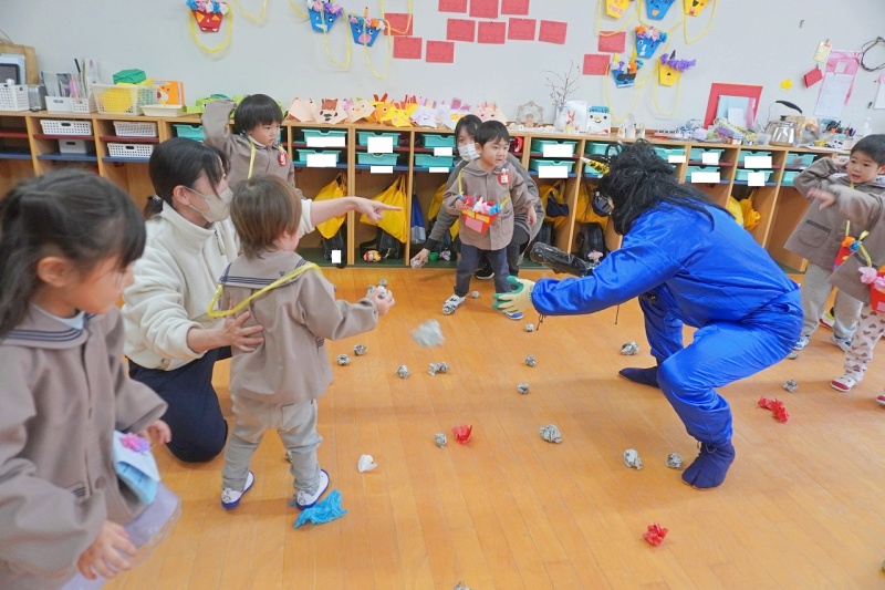 学級閉鎖のため、節分の日に豆まきができなかった年少組のあるクラス…。