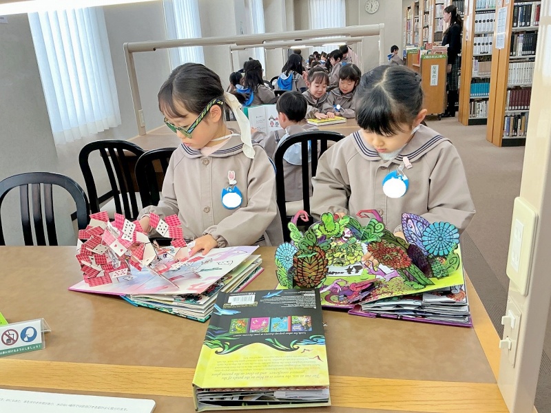 幼稚園にはない仕掛け絵本や英語の絵本に興味津々!!