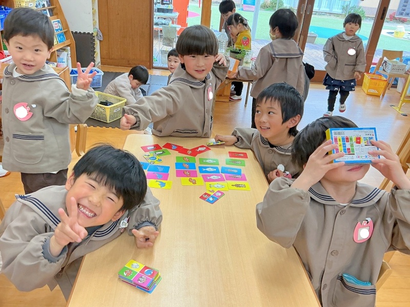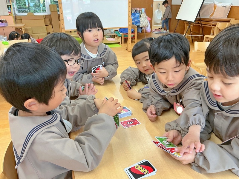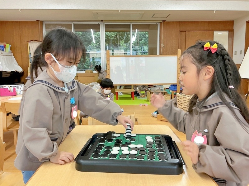 年中組では、カードゲームやオセロを楽しむ子どもたちが増えています。