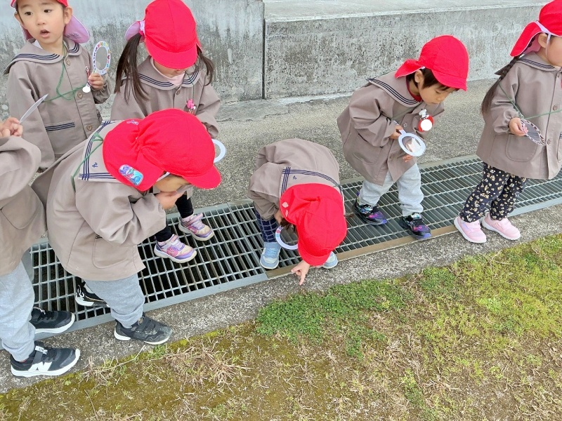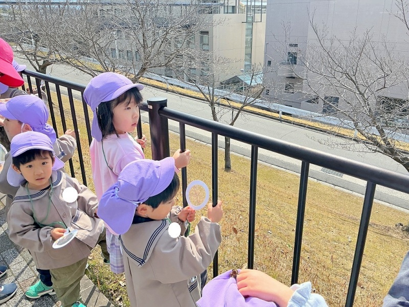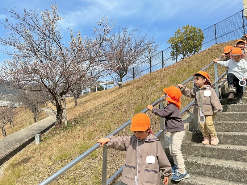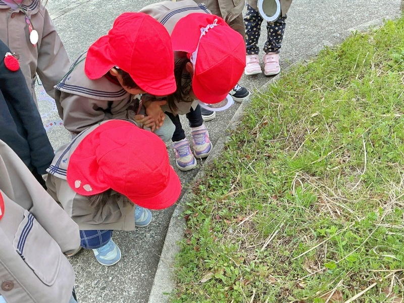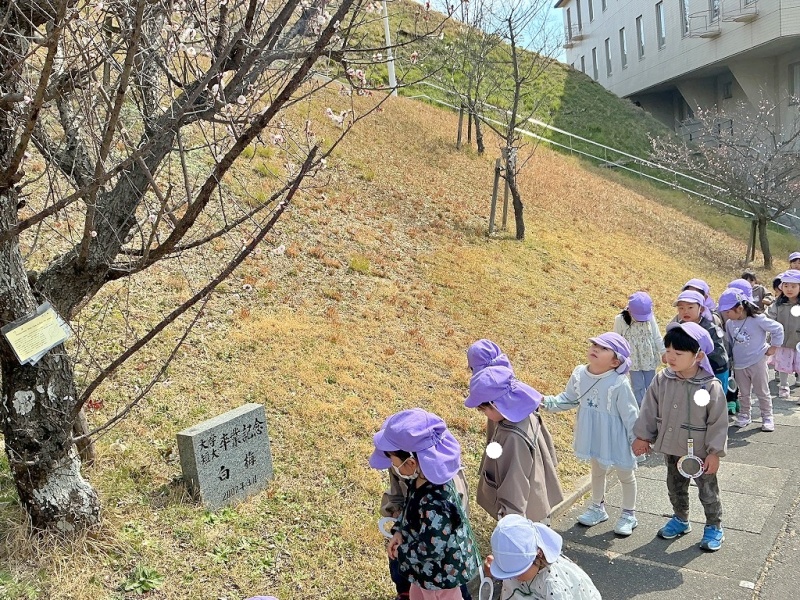 年少組の子どもたちが大学構内に春を見つけに散歩にでかけました(#^^#)