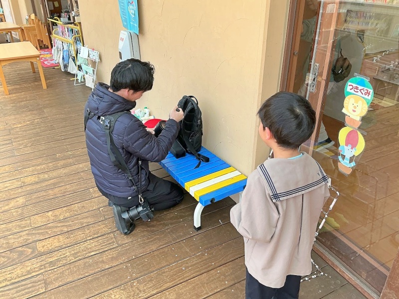メンテナンスをしているカメラマンさんを見つけ、その様子をじーーーーーっと不思議そうに見ていました。こんなこともしながら写真を撮ってくれていることがわかり、憧れの眼差しで見ていました☆(それに気づき、少し照れていたカメラマンさんでした。☆★☆)