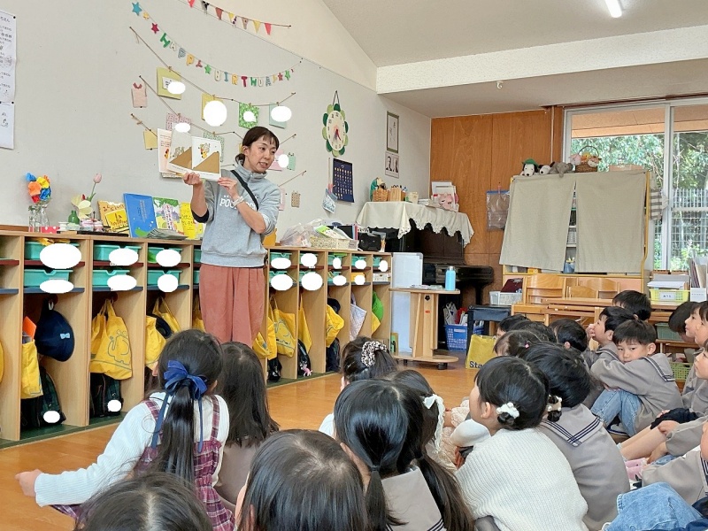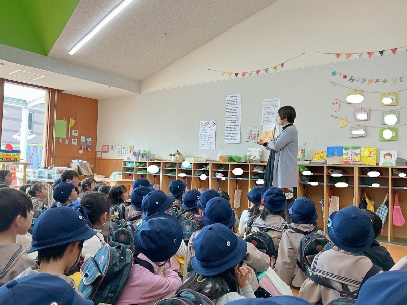 年長組の今日の一日です☆園長先生やフリーの先生におはなしタイムをしていただいたり、子どもたちのリクエストで遊戯室で弁当を食べたりしました♡