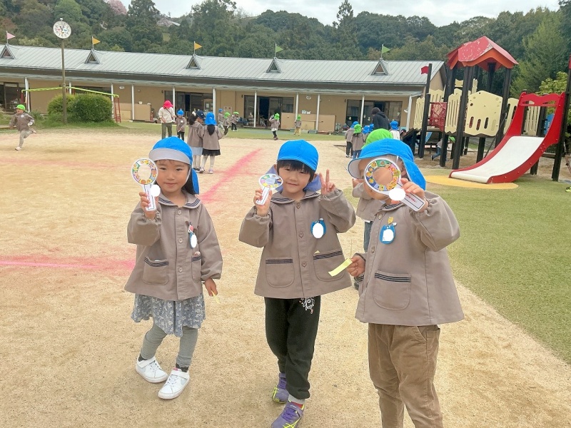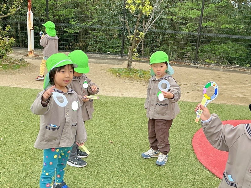 いろいろな色を見つけよう!と手作り虫眼鏡をもって出発!!