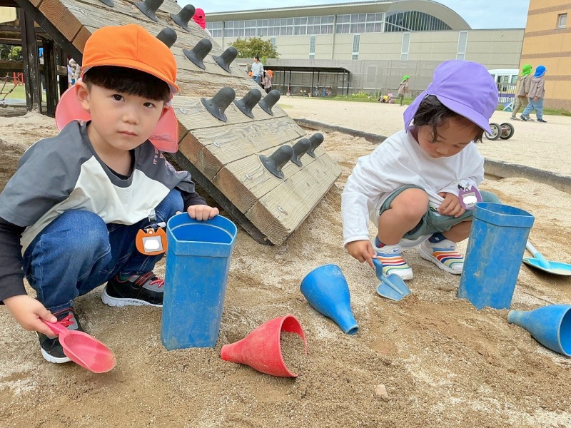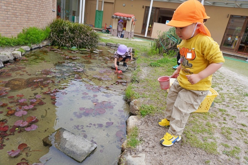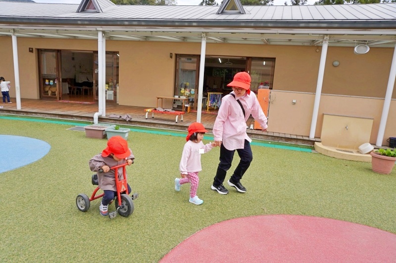 先生と一緒に園庭に出てみたりして遊んでいました♪