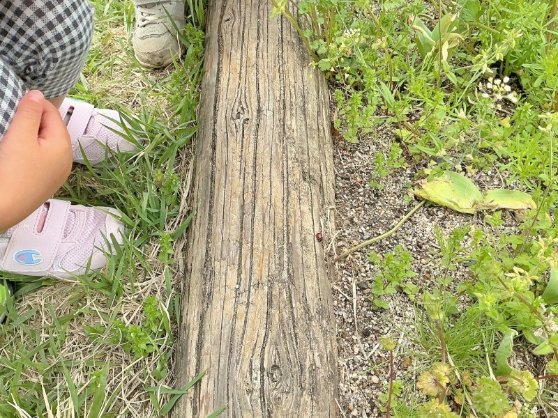 てんとうむしを見つけて「おさんぽしてるのかな?」