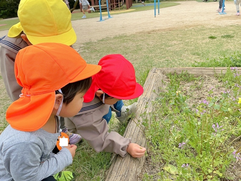 少しずつ暖かくなり、園庭にも生き物が出てきました(#^^#)