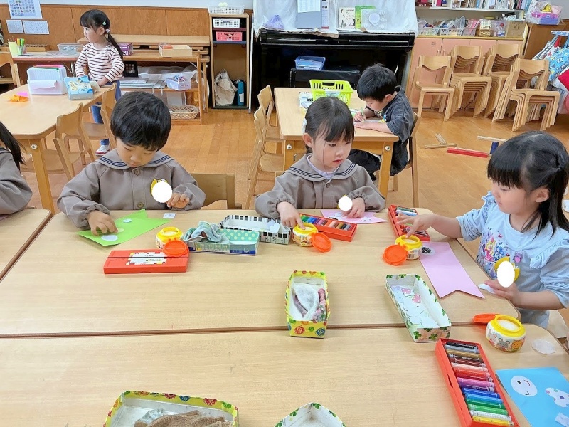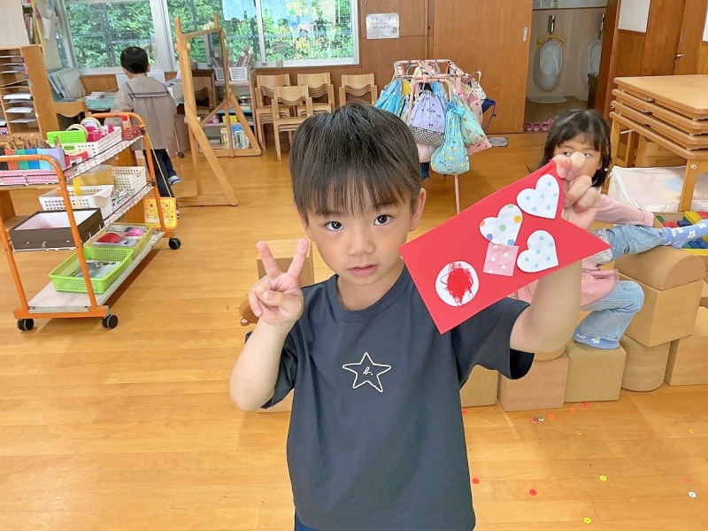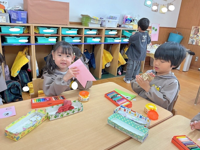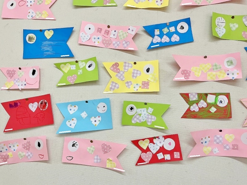 今日は、こいのぼり制作をしました。うろこはいろいろな形の折り紙です。