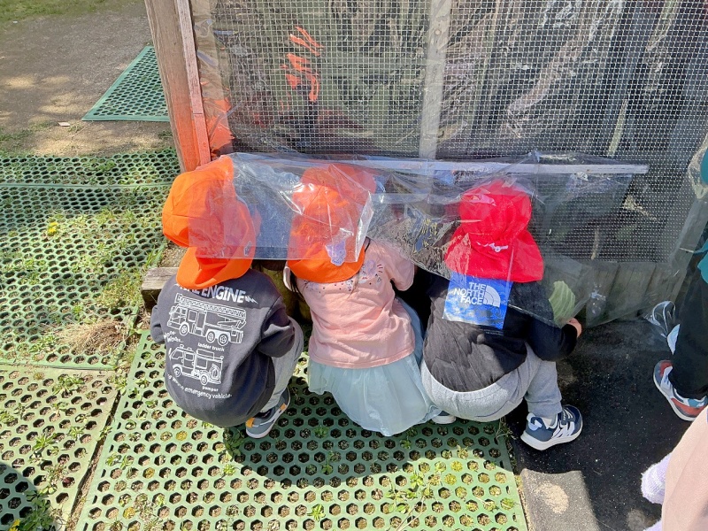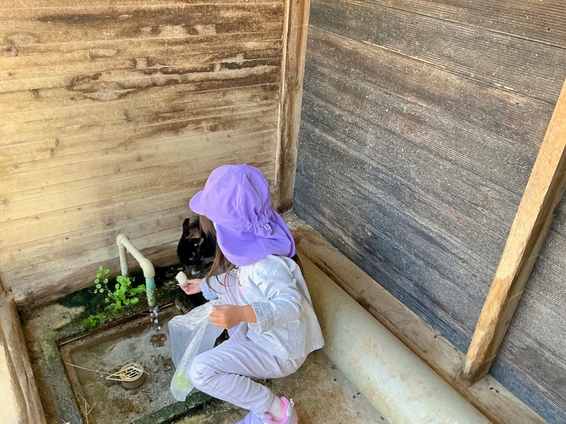 小屋の外から「たべるかな…?」と覗く後ろ姿がとても可愛かったです♡