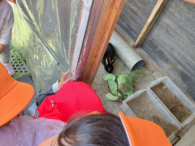 幼稚園の園庭には、うさぎ小屋があります。名前はチョコちゃんです(#^^#)