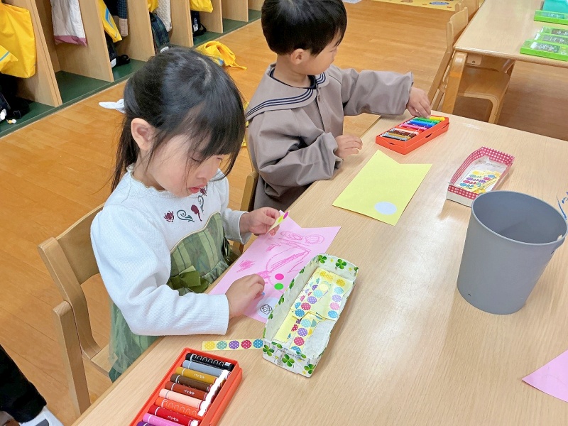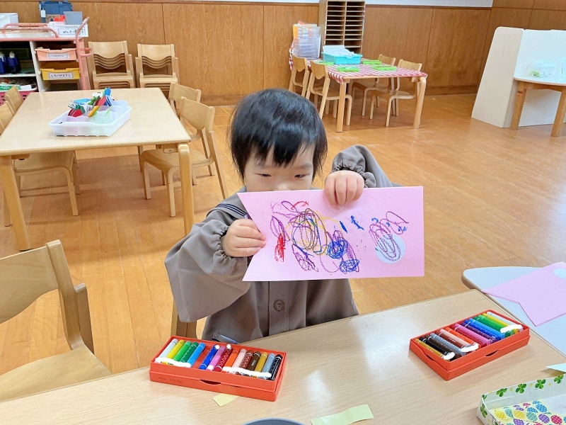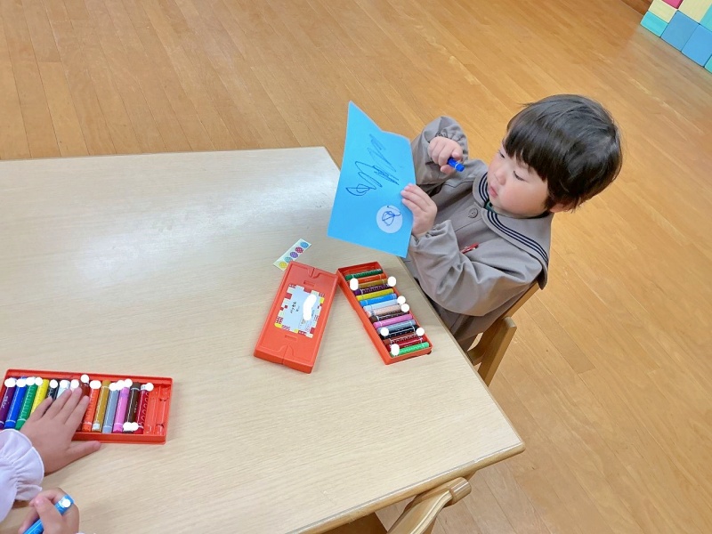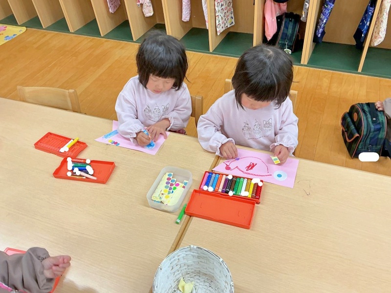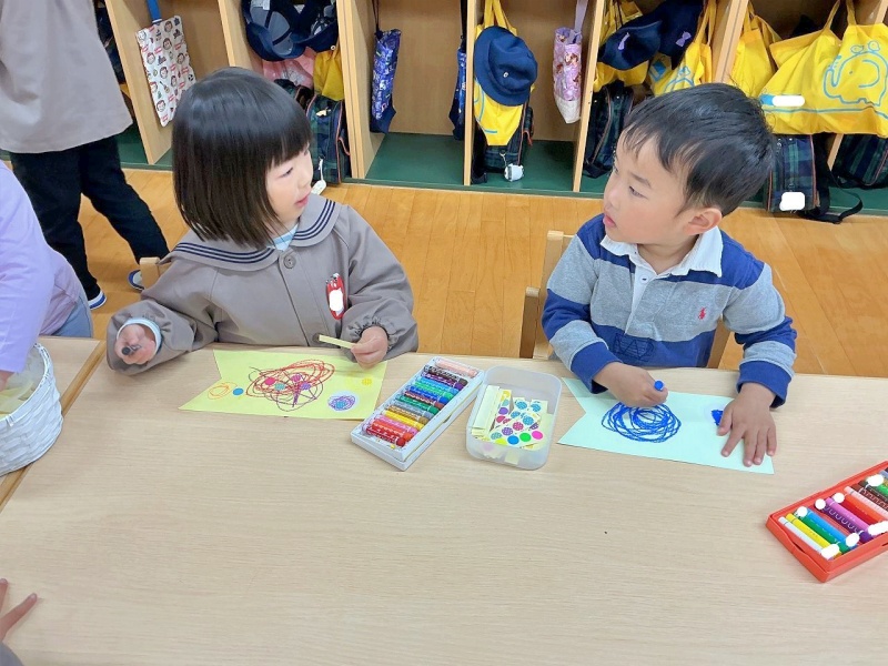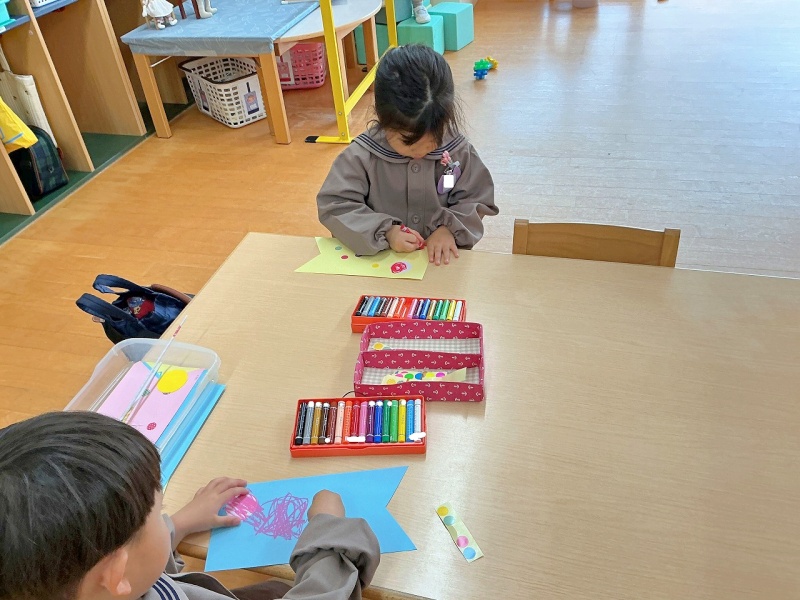 年少組では、クレパスとシールを使って、素敵なこいのぼりを作りました(#^^#)