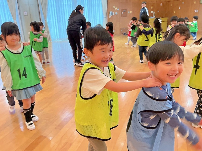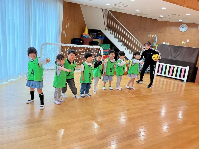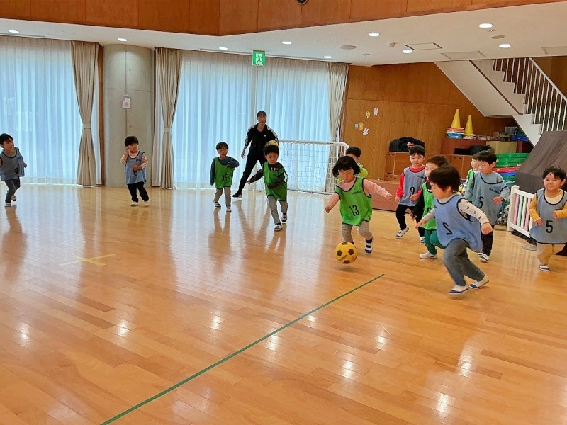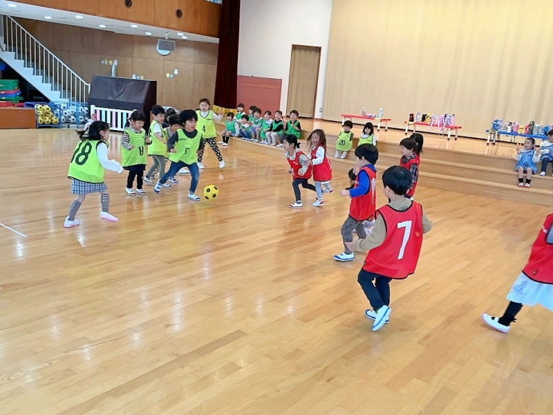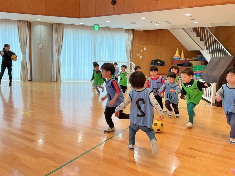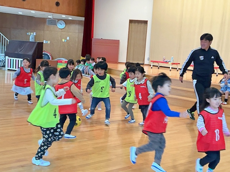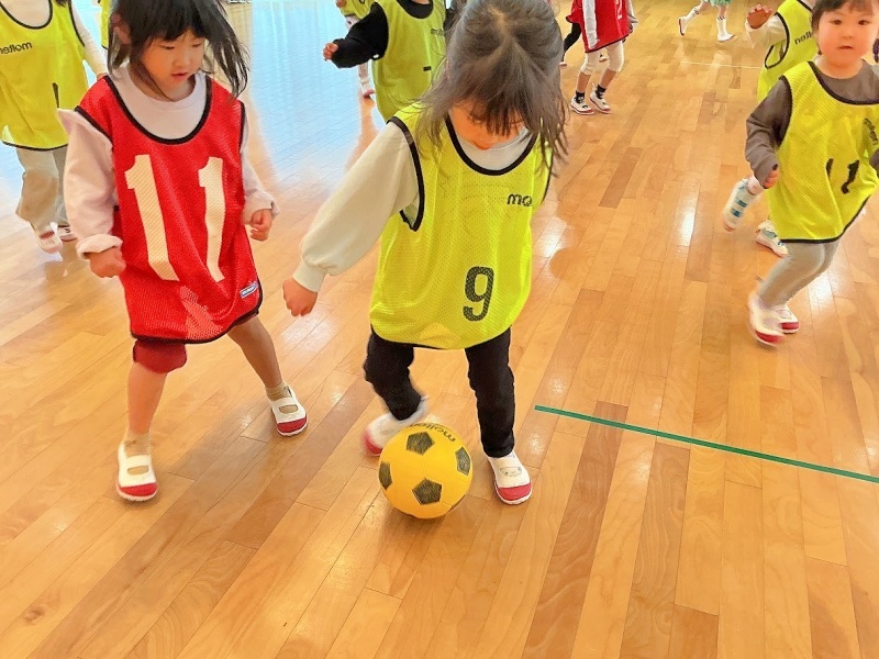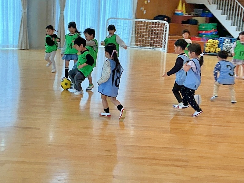 今日は進級後初めてのサッカー教室でした☆★「さっかーだいすきなんよ!」と、楽しみにしていました!2人組になって運動遊びをしたり試合をしたりなど、時間いっぱい楽しみました(^^)