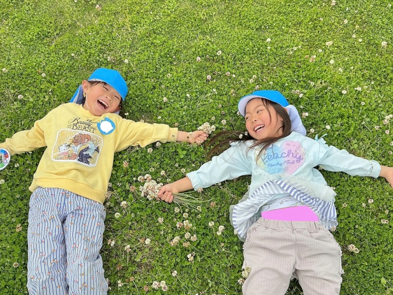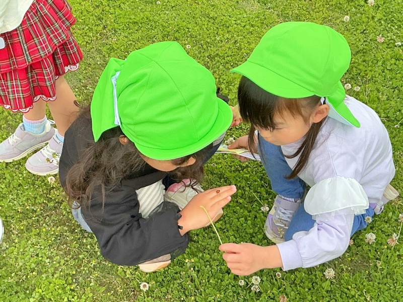 シロツメクサやテントウムシなどいろいろな草花や生き物に出会いました☆