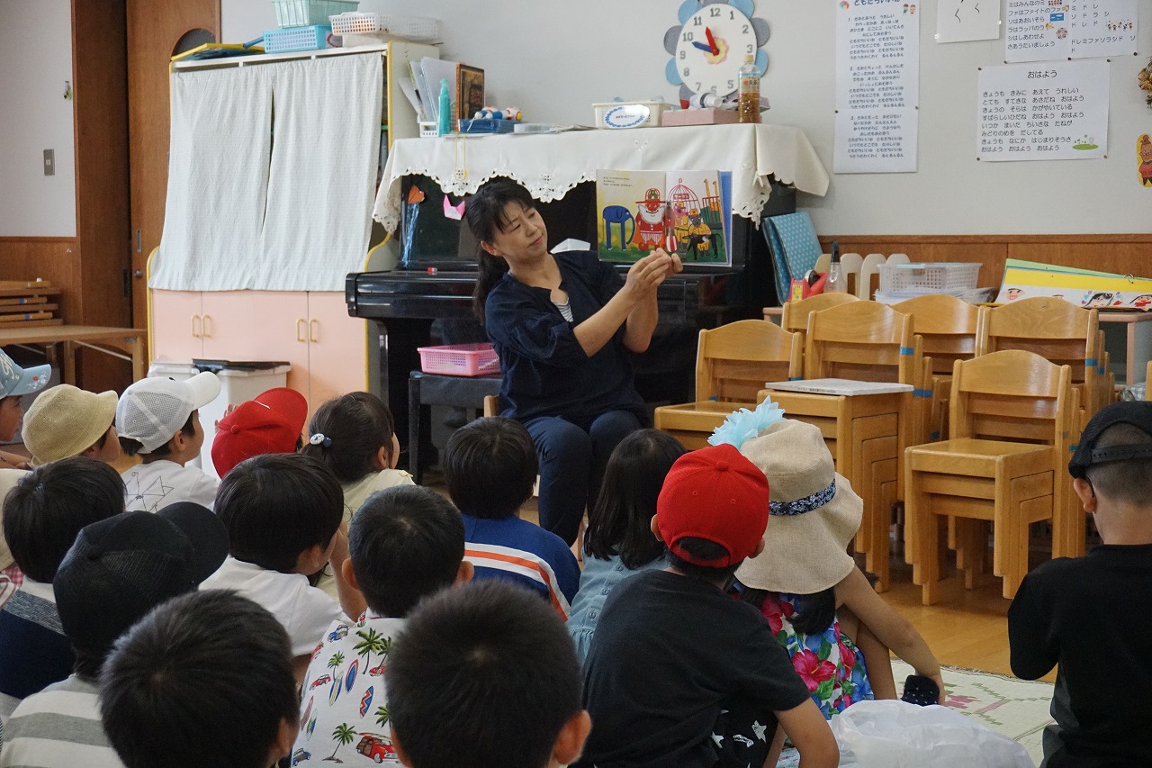前園長先生や、担任の先生から絵本の読み聞かせを久しぶりにしてもらい、ゆったり穏やかな表情で聞いていました。