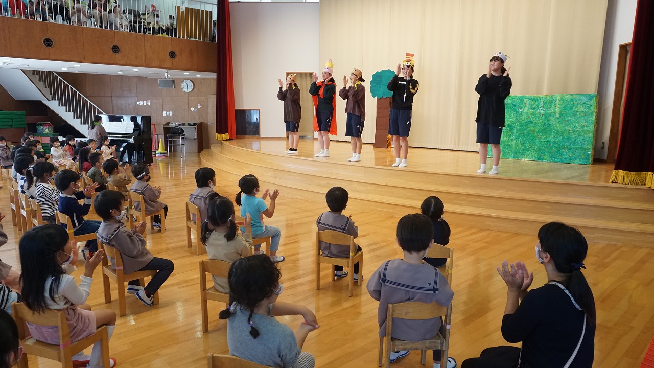 遊んだ後は遊戯室が劇場に変身!お姉さま先生による劇を見て楽しい時間を過ごしました。