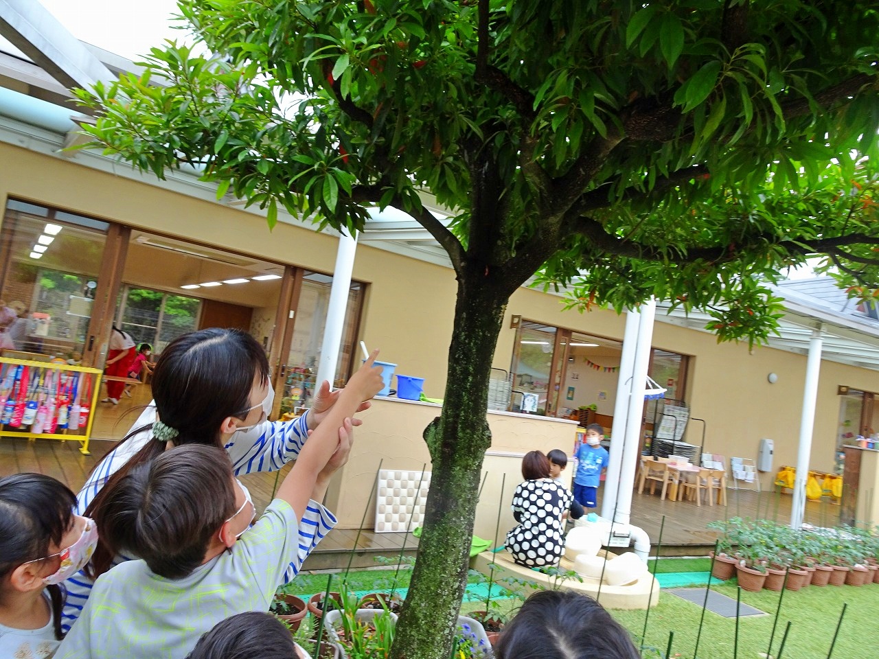 年中児がテラスで集まっていたので見てみると・・・。 年中児がおばあちゃんちの…