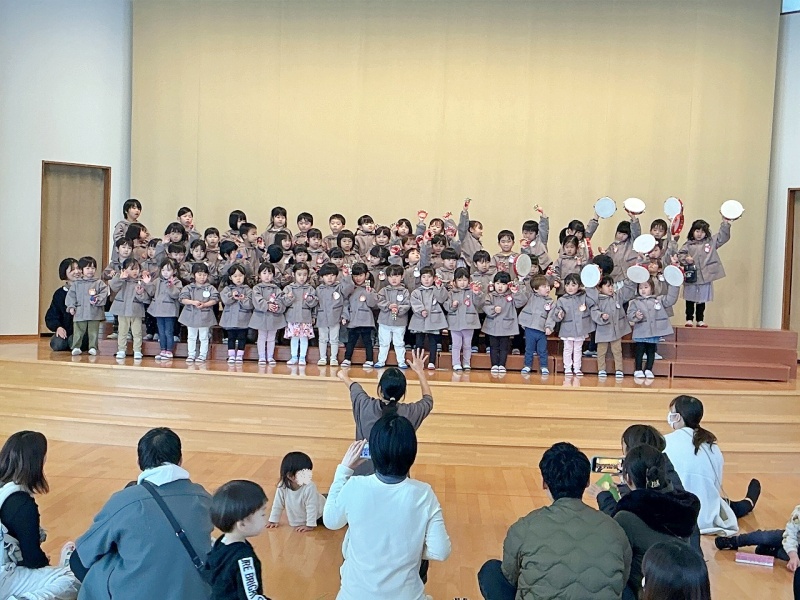 年少組が、園開放で来てくださった方々に向けてコンサートをしました♪ カスタネット…