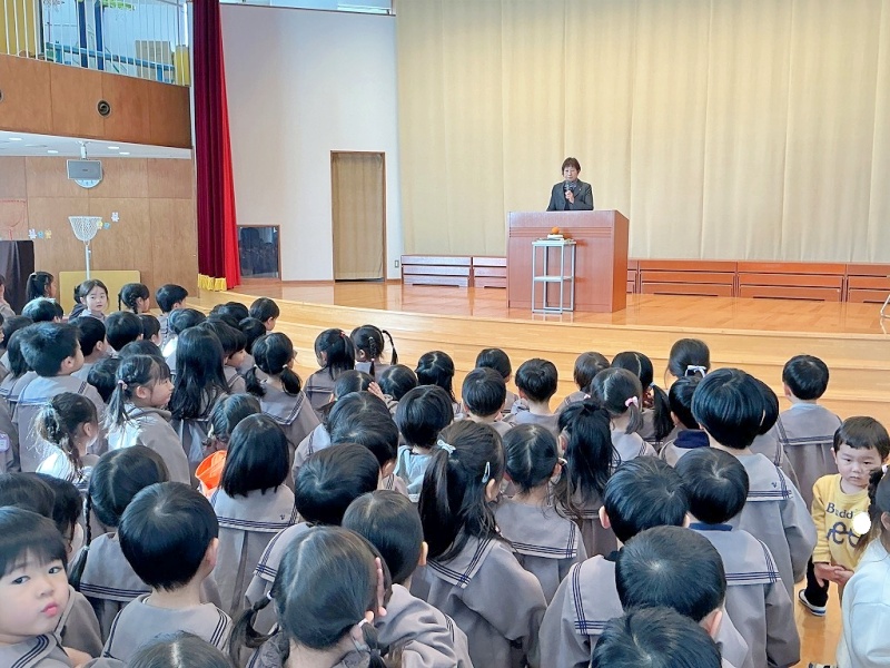 1月8日から幼稚園が始まり、始業式を行いました。 園長先生から三学期も楽しいこと…