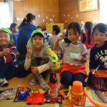稲刈り後は、短期大学付属幼稚園のかぜぐみ・そらぐみの友達と一緒に遊戯室で弁当を食べたり園庭で遊んだりして、楽しい時間を過ごしました。