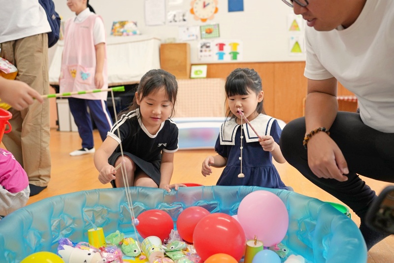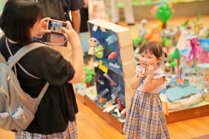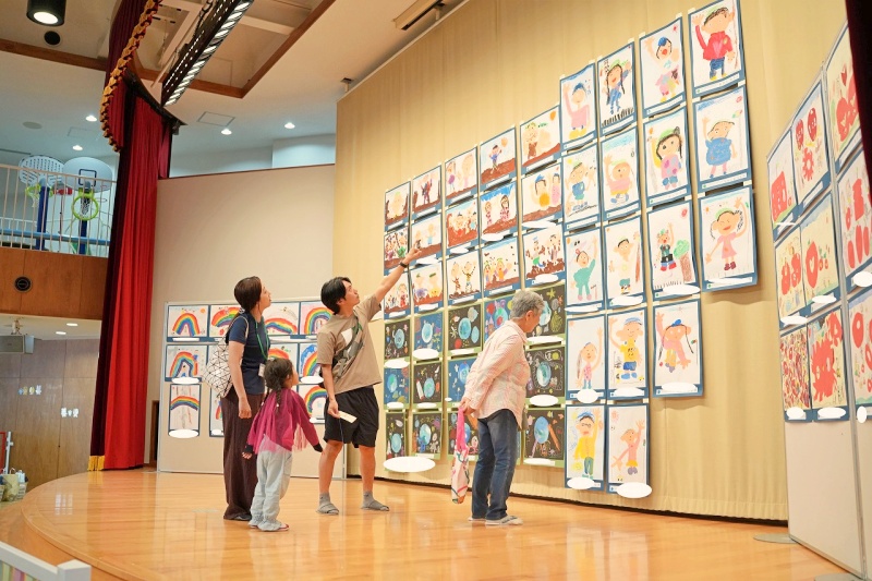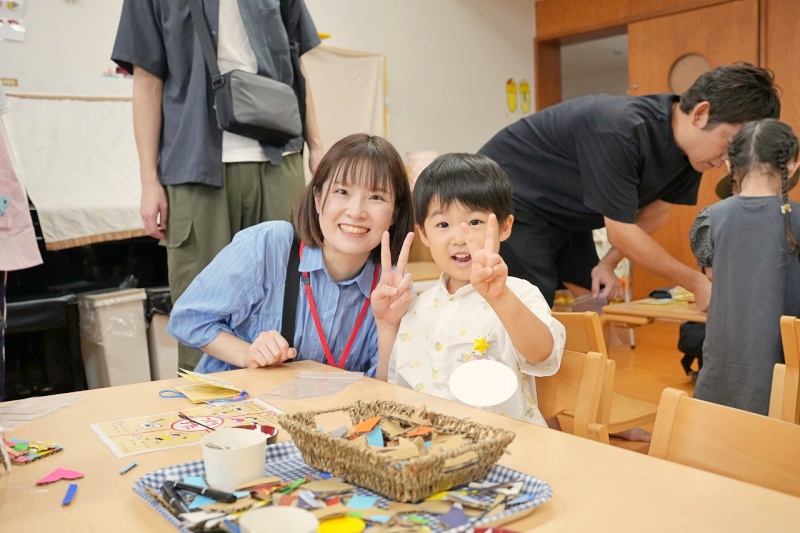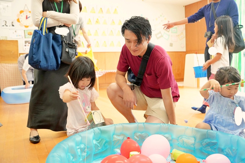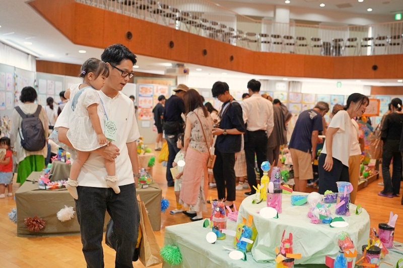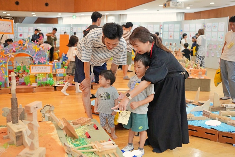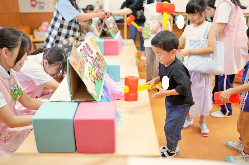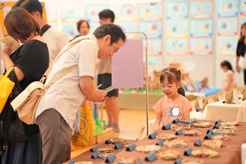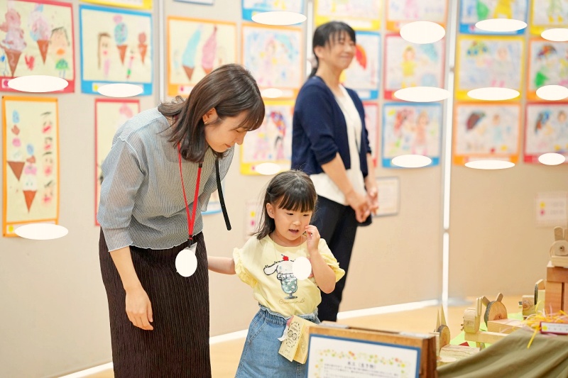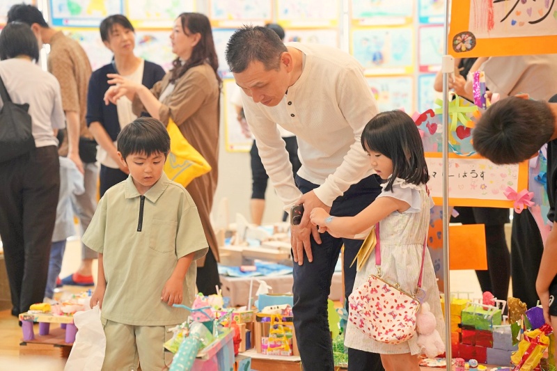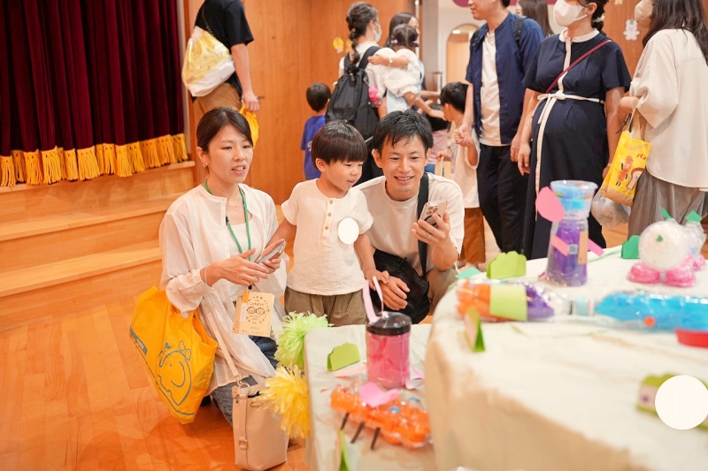 子どもたちの日頃の造形遊びの展示や、保護者会役員の方による遊びのコーナーやキッチンカーなどがありました。子どもたちは、ゲームを楽しんだり、自分で作った作品を保護者の方に見てもらったりしながら楽しんでいました。