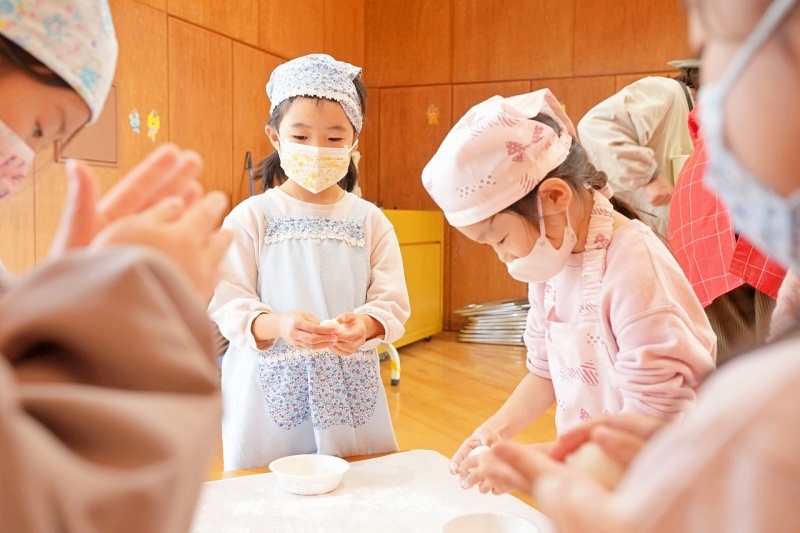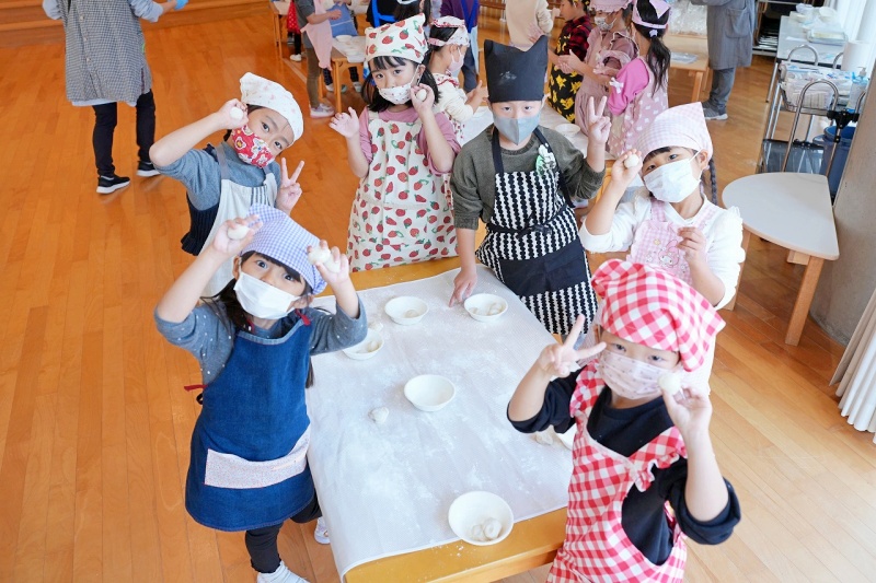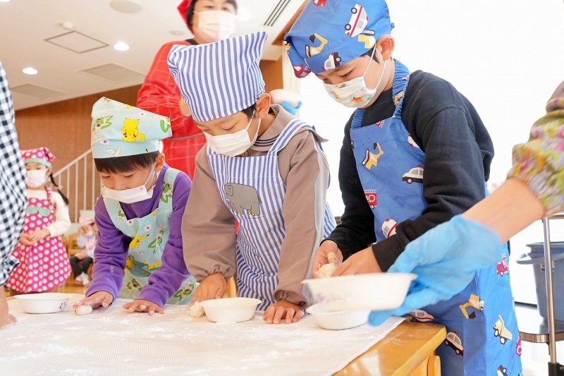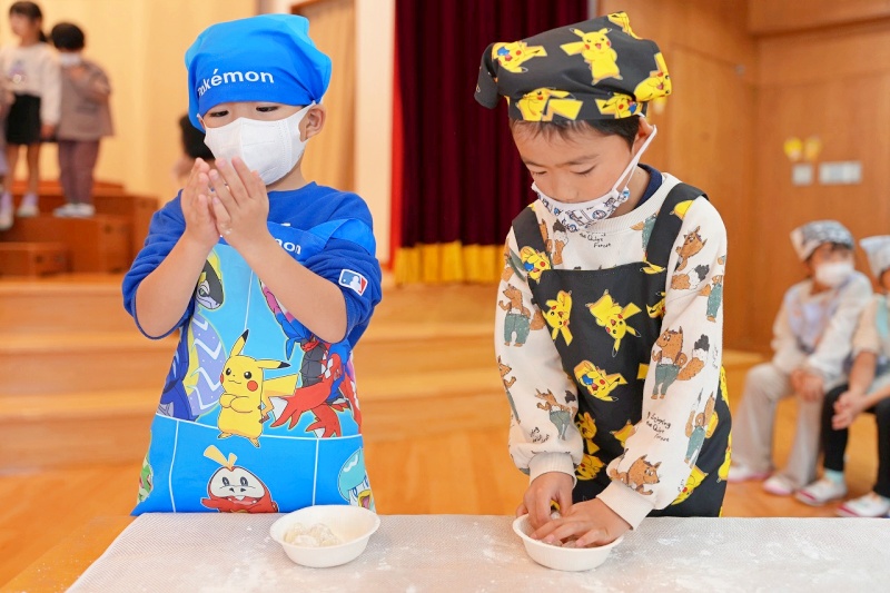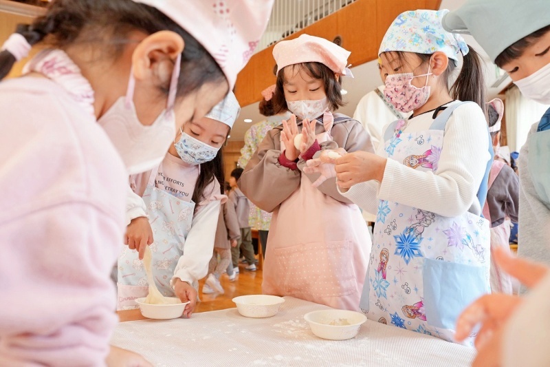 年長児は、出来上がったお餅を自分で丸めて持ち帰りました。