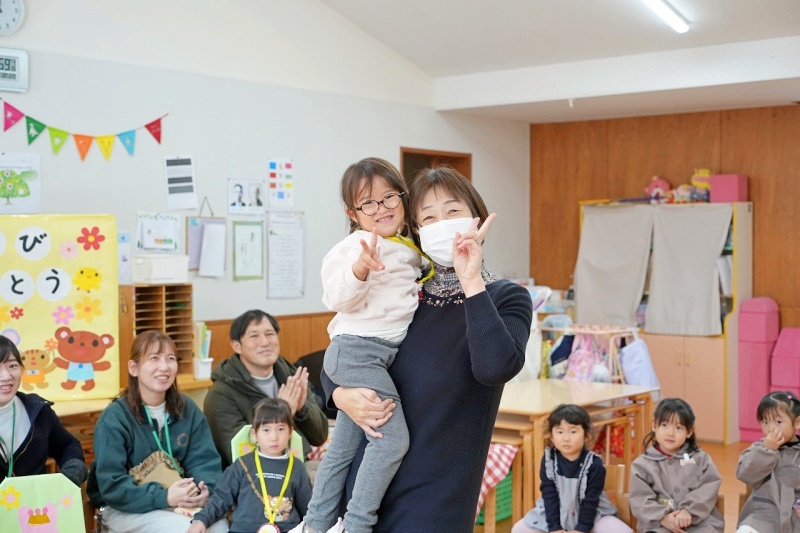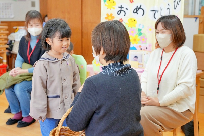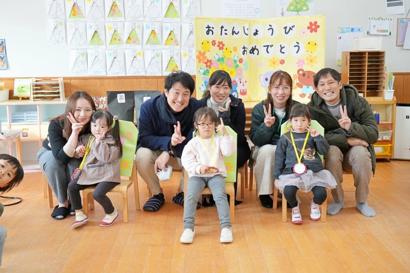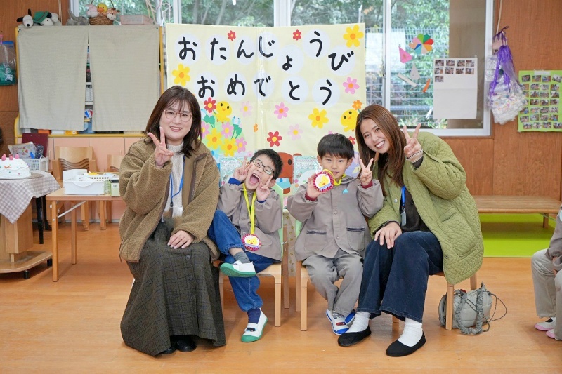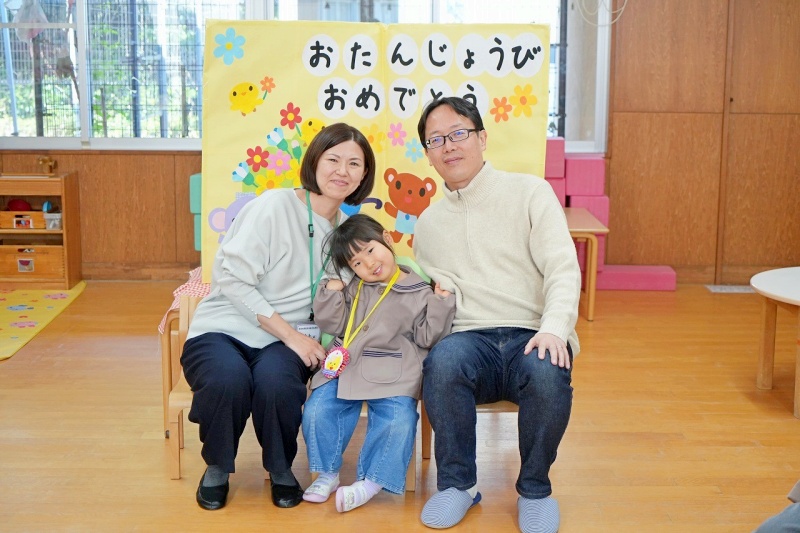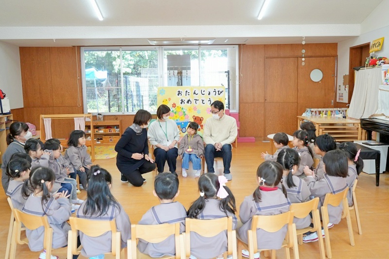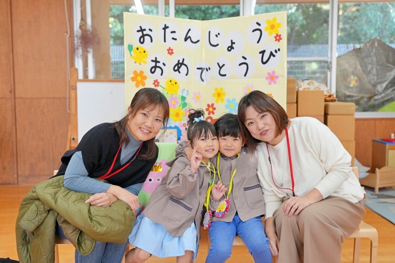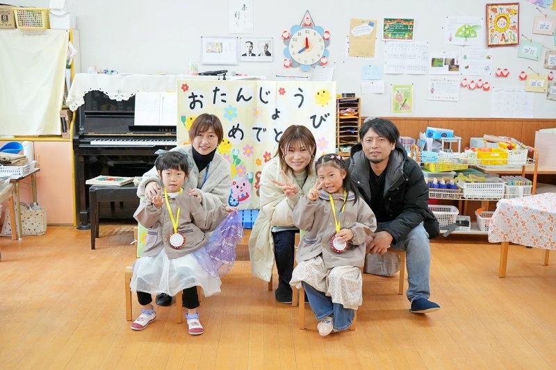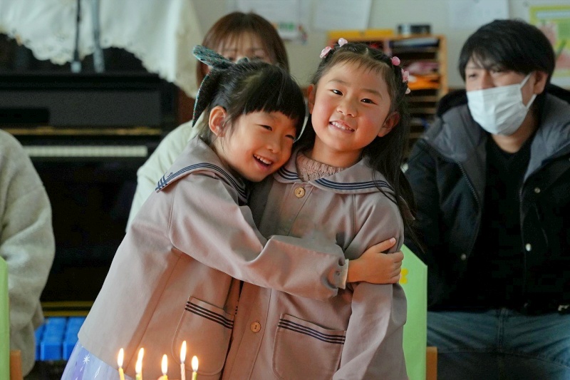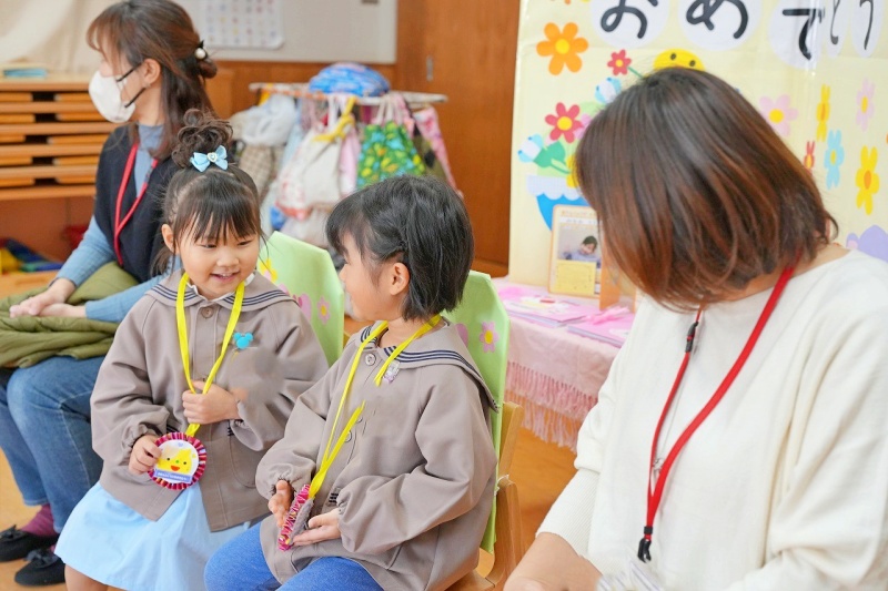 クラスの友達から、たくさんの「おめでとう」のメッセージを言ってもらったり、園長先生からパワーの入ったペンダントをつけてもらったりし、楽しい誕生日会となりました。