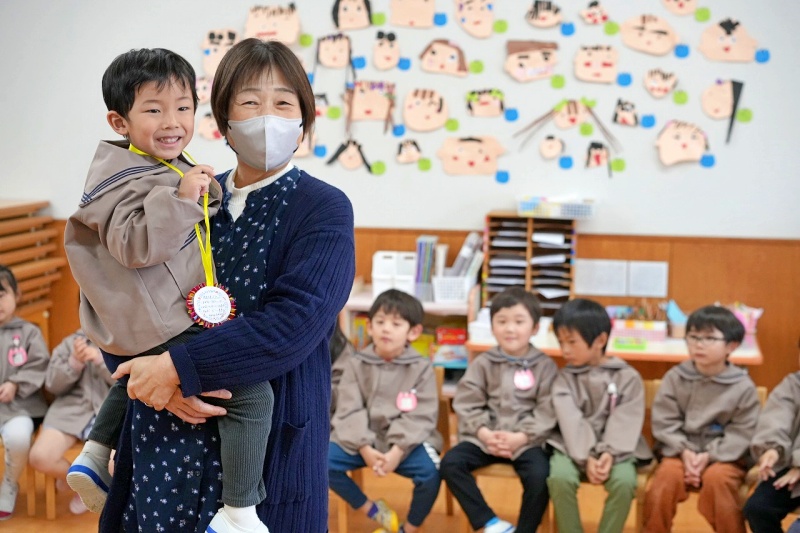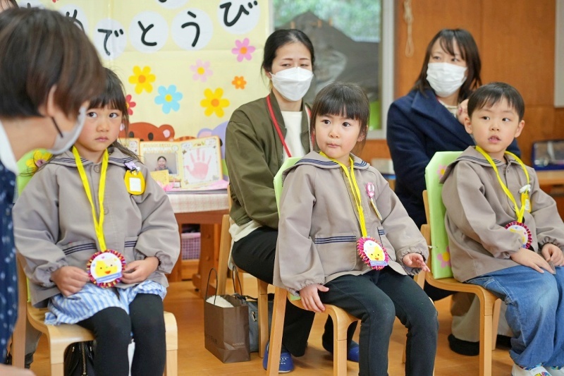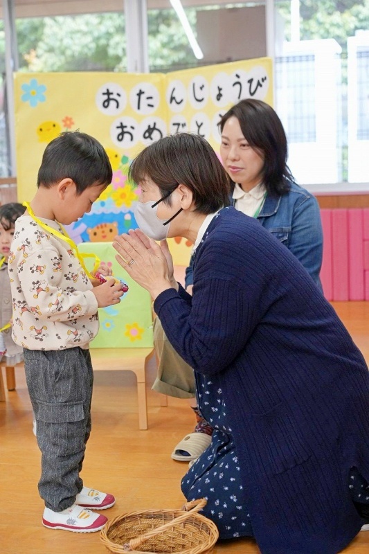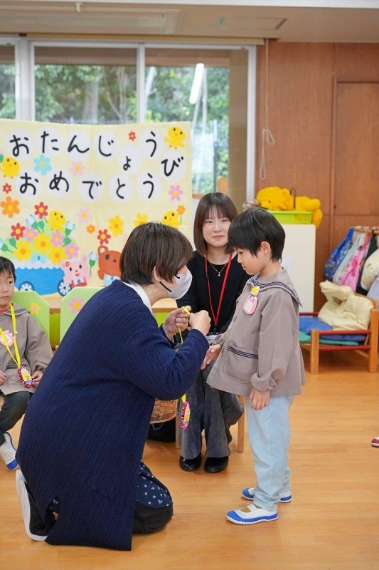 園長先生にパワーの入ったペンダントをもらったり、クラスの友達にお祝いの言葉をもらったりしました。